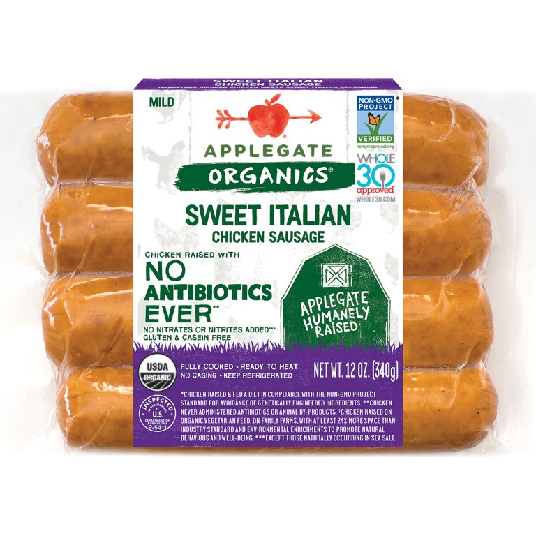 Applegate Organics Mild Sweet Italian Chicken Turkey Sausage 12 Oz Walmart Com